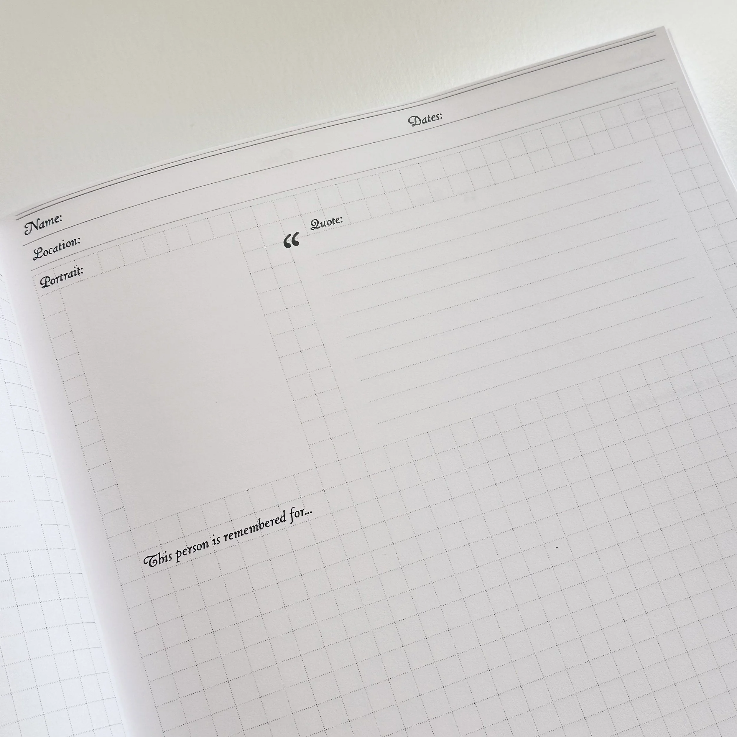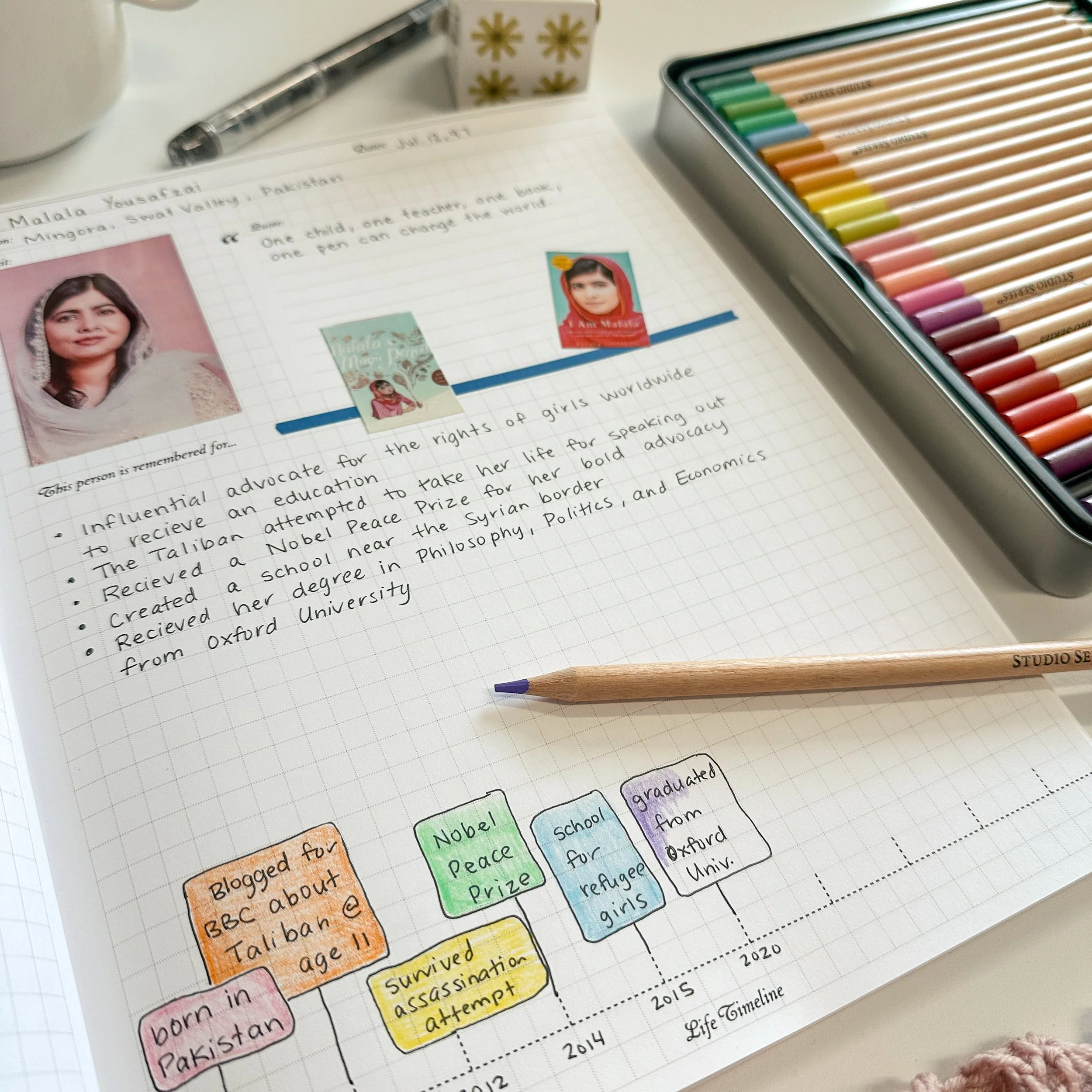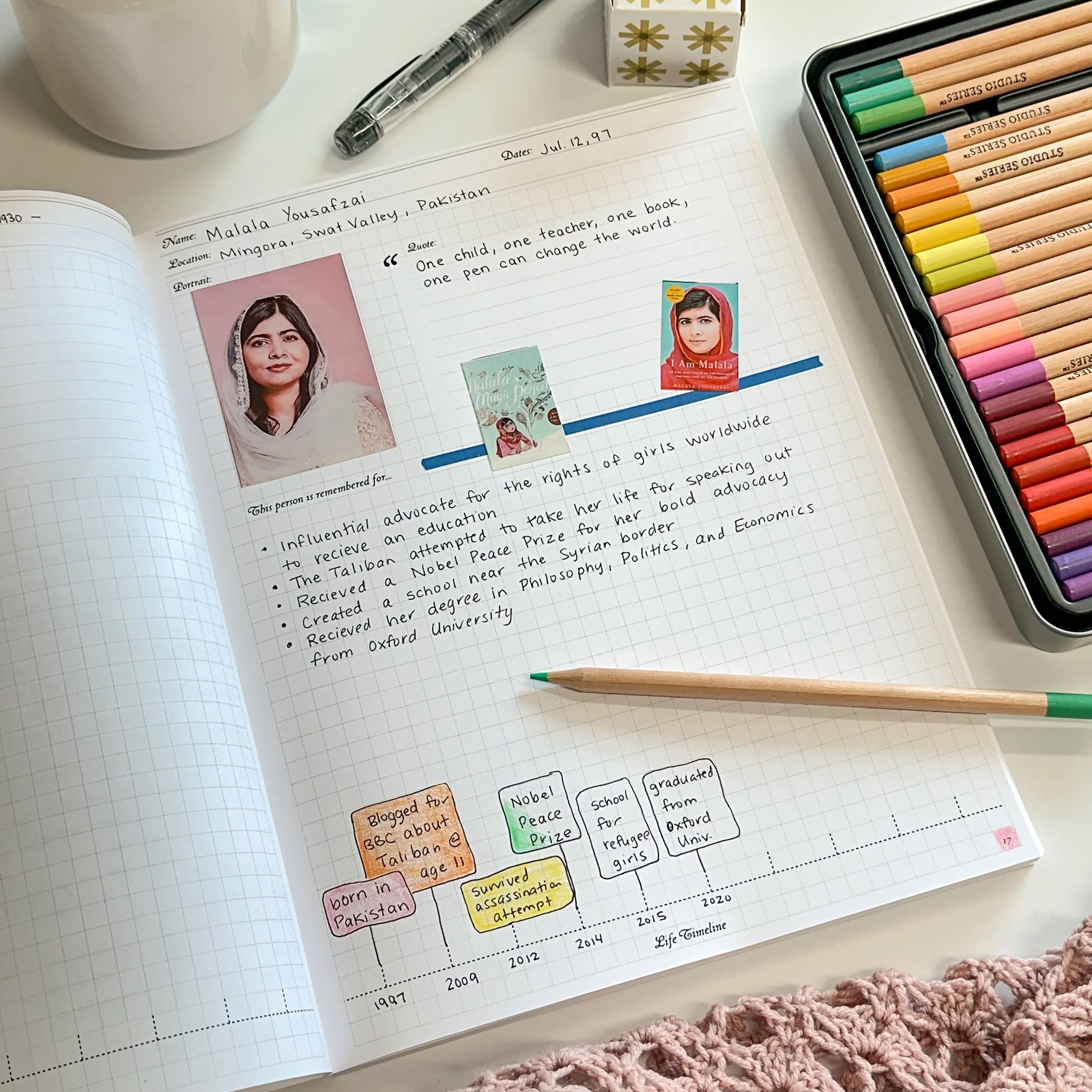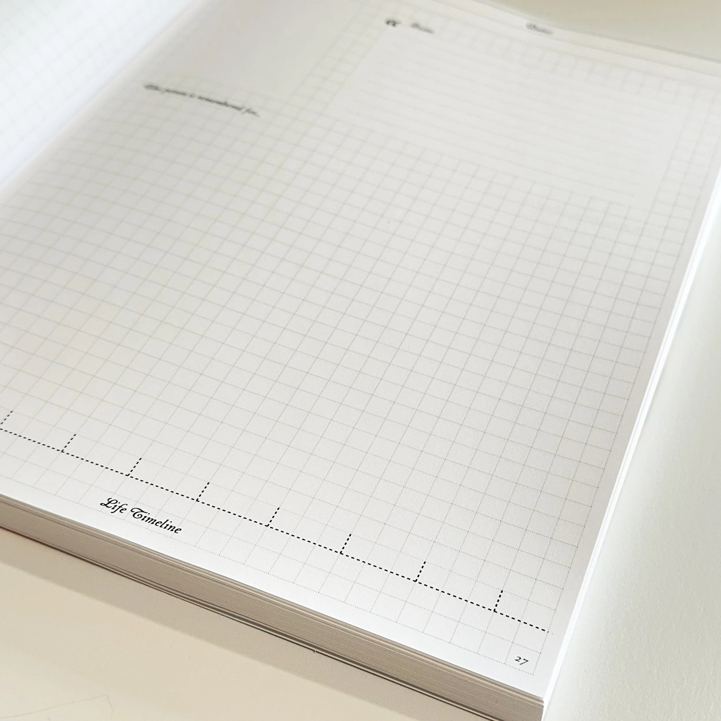 Horizontal timeline with graph paper pages