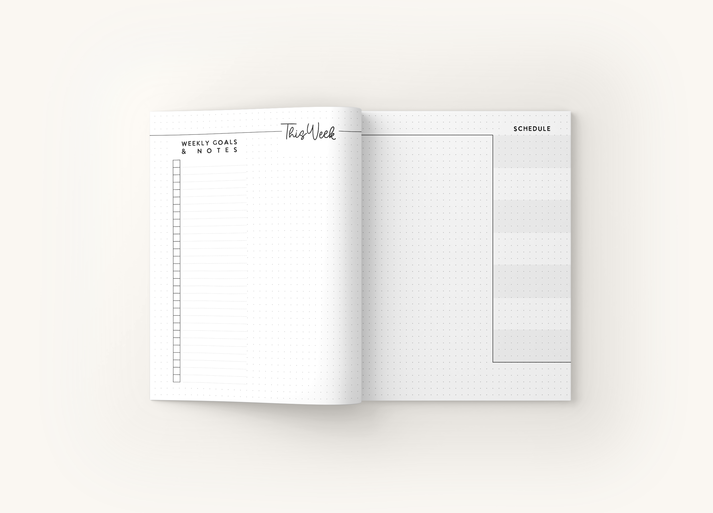 Weekly Overview Layout (Goals, Notes, Checklist, Schedule)